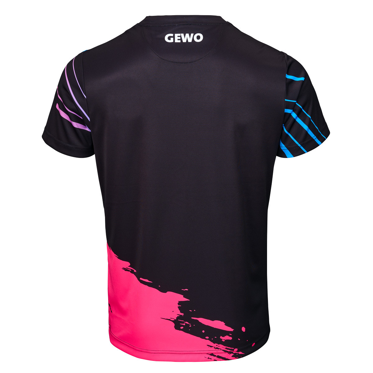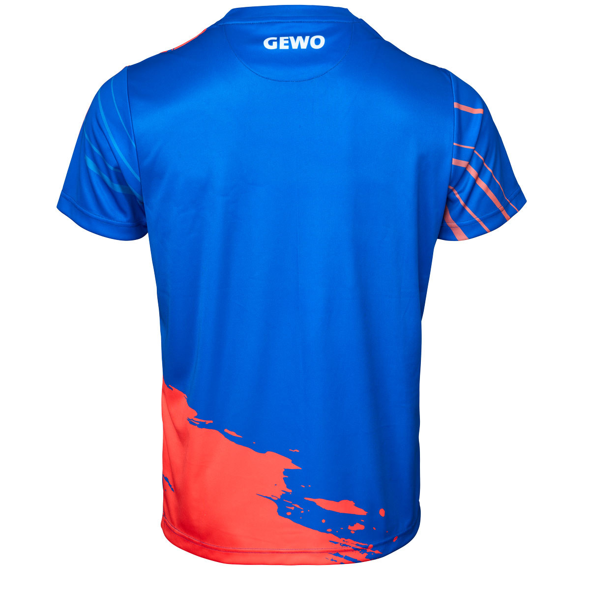Die Rückseite bleibt überwiegend ruhig und wird durch einen gezielten Farbakzent im unteren Bereich ergänzt – für ein ausgewogenes Gesamtbild mit Wiedererkennungswert. Das GEWO Logo auf der Brust setzt einen klaren sportlichen Abschluss.