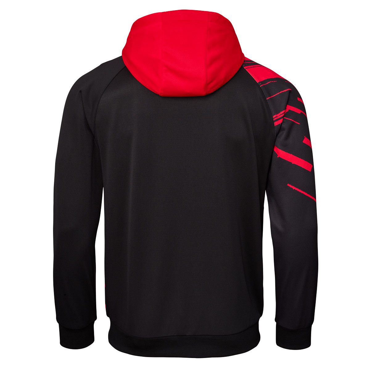 Die dynamische Linienführung zieht sich kraftvoll über die Vorderseite und setzt sich am Ärmel fort. Dadurch entsteht ein spannungsreiches Gesamtbild mit klarer Bewegungsrichtung und moderner Ausstrahlung.
