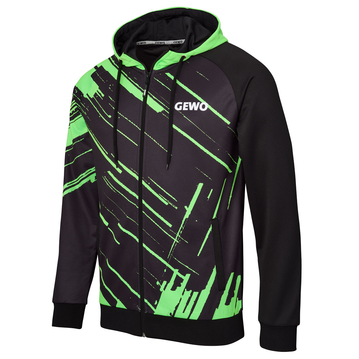 Der GEWO Hoodie Atani verbindet markante Dynamik mit funktionalem Tragekomfort. Die kraftvoll diagonal verlaufende Linienstruktur auf der Vorderseite und am Ärmel verleiht dem Hoodie eine energiegeladene Ausstrahlung – ideal für Tischtennisspielerinnen und Tischtennisspieler, die auch abseits des Tischtennistisches sportliche Präsenz zeigen möchten.
