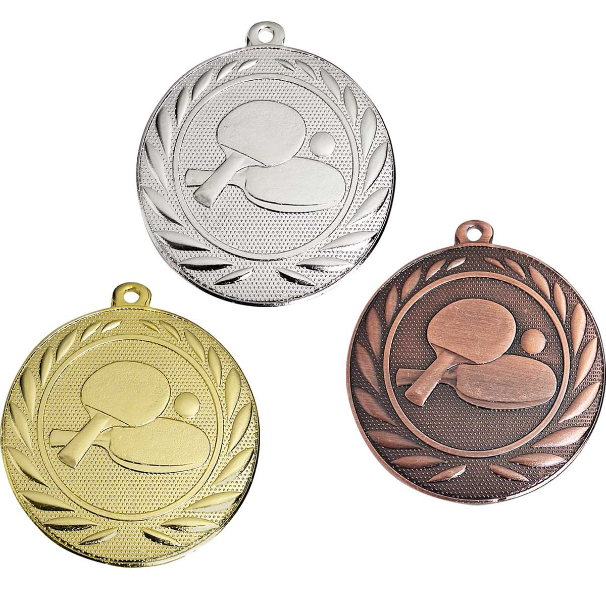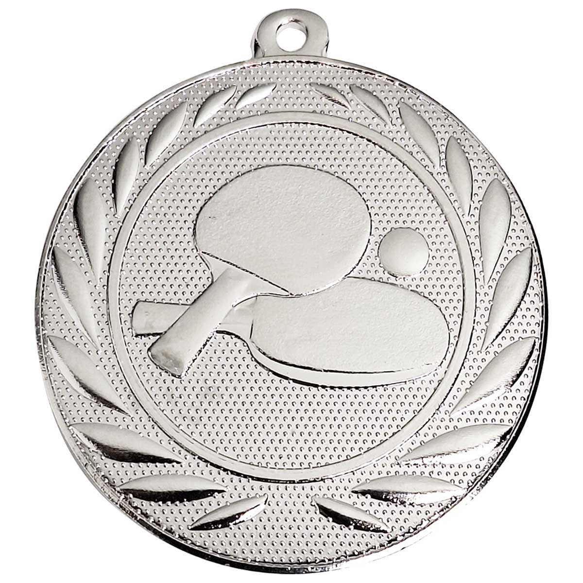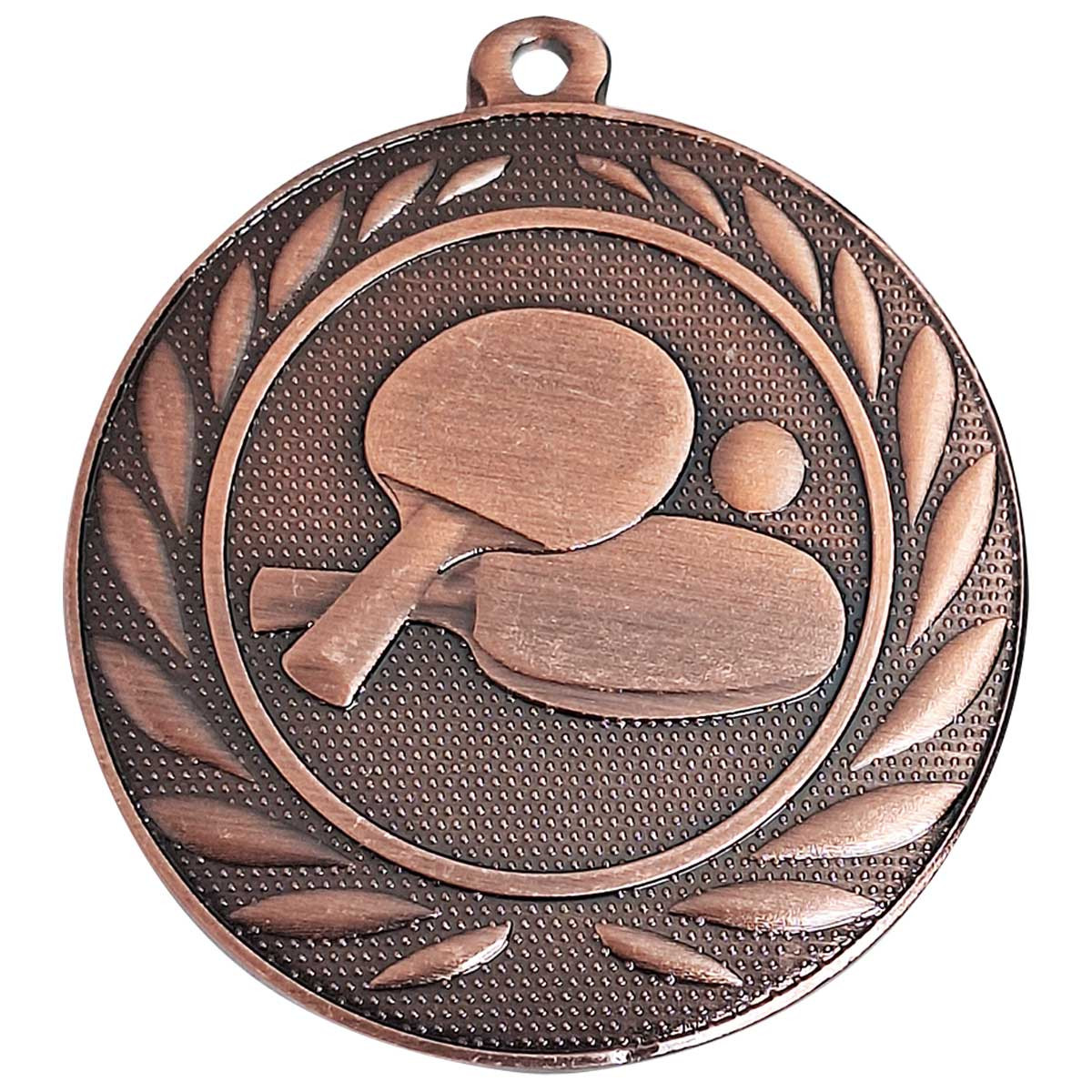 Die Medaille ist rund gestaltet und besteht aus stabilem Eisen. Sie verfügt über eine fein strukturierte Oberfläche, die für eine hochwertige Optik und gute Erkennbarkeit sorgt. In der Mitte ist ein Tischtennis-Motiv mit Schläger und Ball eingeprägt. Das Motiv ist reliefartig ausgeführt und hebt sich sowohl optisch als auch fühlbar vom Hintergrund ab.